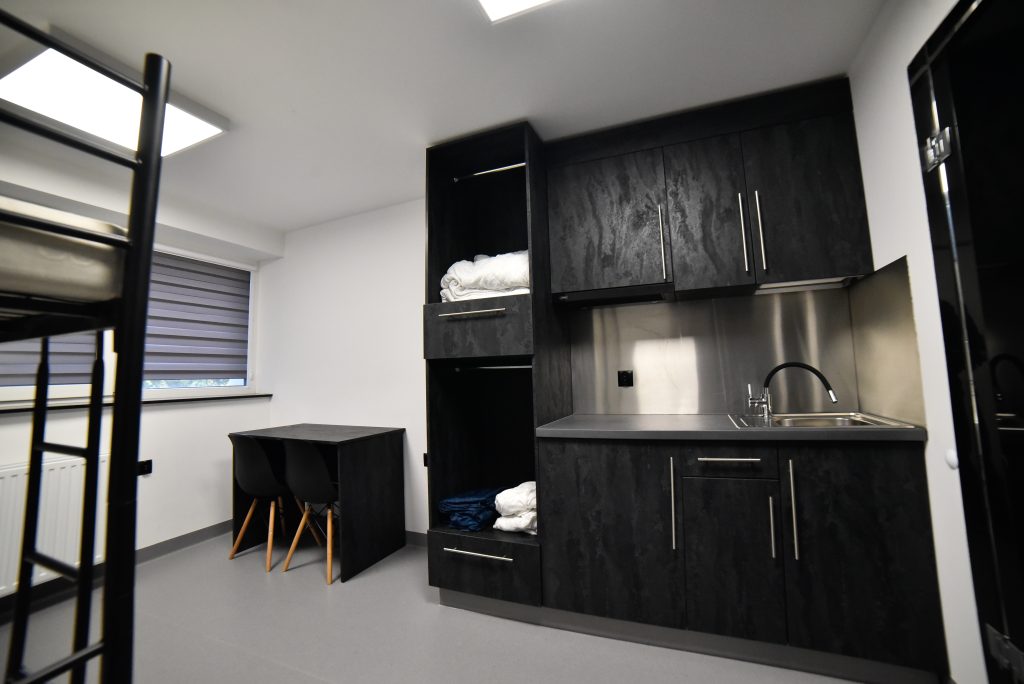 Na wyłączność mieszkańców Stali Rzeszów dostępne są nowoczesne, w pełni wyposażone pokoje z aneksem kuchennym i prywatną łazienką. Oferujemy pokoje w standardzie 1-, 2- oraz 3-osobowym, zapewniające komfort i prywatność.