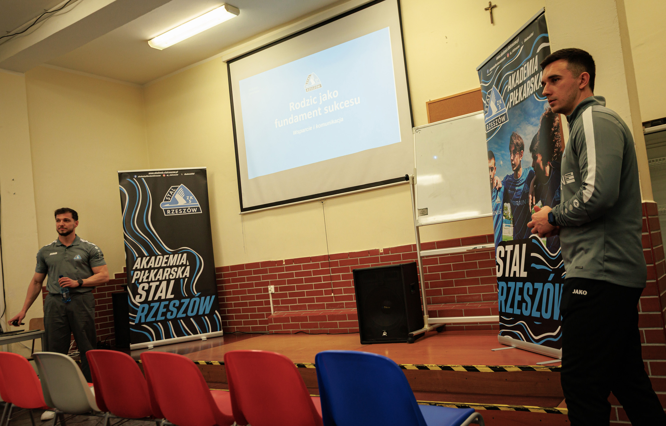 W piątek 6 lutego w auli SMS Stal Rzeszów odbyło się kolejne spotkanie w ramach warsztatów dla rodziców zawodników Akademii Piłkarskiej Stali Rzeszów. Tym razem rodzice młodych piłkarzy z kategorii U11–U14 wzięli udział w prelekcji prowadzonej przez psychologów sportowych pracujących w Stali Rzeszów – Kamila Rączego oraz Joannę Kotek. Tematem spotkania była „Rola rodzica w rozwoju młodego piłkarza. Rodzic jako fundament”. Zobaczcie galerię zdjęć autorstwa Krzysztofa Krupy z tego spotkania.